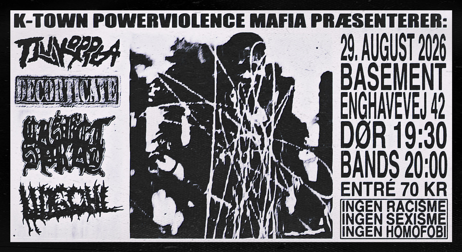 Denne aften præsenterer KTOWN POWERVIOLENCE MAFIA fire bands, der viser, hvor bred og vild subgenren kan være – altid med aggressionen tilfælles.